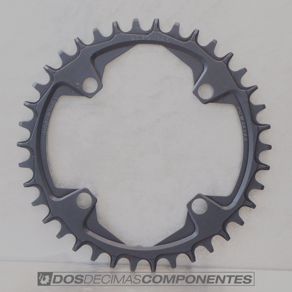 Nuestras coronas con BCD104 tipo xx1 o narrow wide van montado en la mayoría de las palancas del mercado con fijación 104mm, ideales para transmisiones 1×9,1×10,1×11 con disponibilidad de 30 a 42 dientes proporciona una gama completa para las distintas disciplinas y/o circuitos.